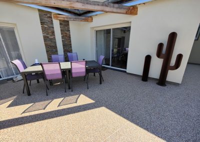 Découvrez les différentes réalisations déjà concrétisées en moquette de pierre de nos différents domaines d’application. Terrasses et balcons, allées de jardin et cours extérieures, escaliers extérieurs, allées de garage carrossable et plages de piscine.